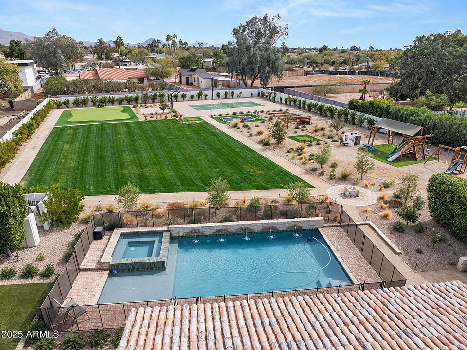 A very rare opportunity to buy an incredibly charming home in the highly sought after Cactus Corridor. This stunning Blaine Drake designed ranch style home is perfectly situated on one of the biggest lots in the neighborhood at over 46k sqft. The private, resort like backyard is something that needs to be experienced to truly appreciate. Authentic Chicago brick hard scapes, outdoor kitchen, in-ground trampoline, stone water features, and built in fire pit is just the beginning. A 200 year old limestone trough imported from France is the centerpiece of the yard and is surrounded by hundreds of plants, trees, and hedges. Brand new heated pool and spa with both electric and propane heat options. A massive putting green out back with multiple locations throughout the yard to hit approach shots from.