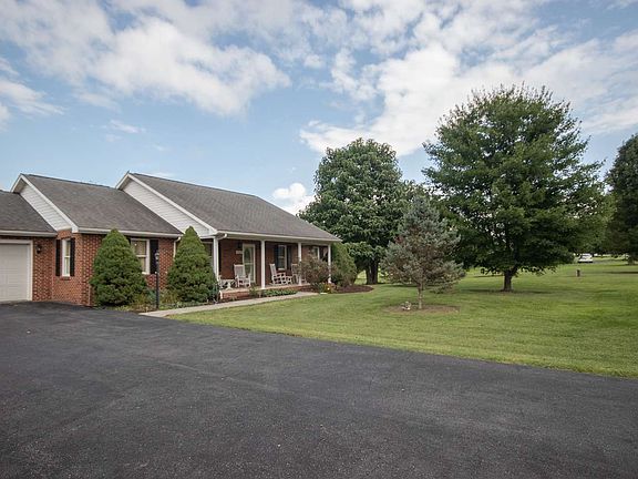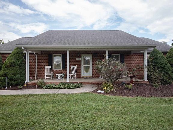 This quality built, all-brick, ranch style home is ready for its second owner! The main level features a generous sized living room, a spacious eat-in kitchen with an island, a master suite with an attached bathroom with a double vanity, two additional bedrooms, and an additional full bathroom. The full walkout basement offers enormous potential for expansion and is already equipped with an electric range, microwave, sink, and a third full bathroom. Don't miss the back deck off of the kitchen, attached two car garage, covered front porch, storage shed, and mountain views! All of this on 2.5 acres!