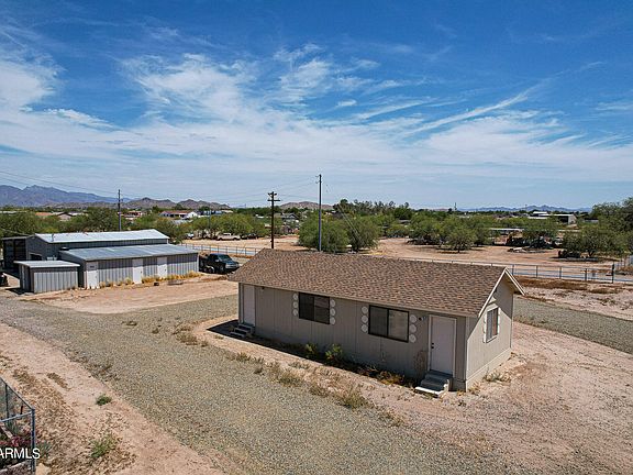 The interior has 3 beds and 2 baths with large rock tile flooring and great natural lighting throughout. Avoid the AZ heat with your choice of the AC, swamp cooler, or ceiling fans positioned in every room of the house. Two additional rooms added onto the master bedroom can serve as office space or additional storage room.