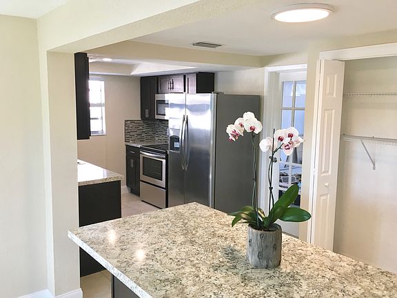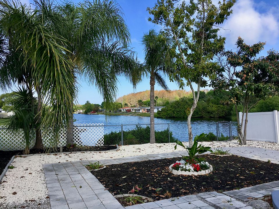 LAKEFRONT - This fully renovated lakefront home is BACK ON MARKET due to buyer's financing issues. Step through the front door and experience lakefront living in this beautiful 3/2/1 home. At 1621sf (htd), this bright and spacious home offers a true 3 bedroom, 2 bathroom layout. Tiled throughout except for new carpet in the master bedroom. Completely renovated ensuite master bathroom offers large walk-in shower, 36" vanity and a comfort height toilet. All-new kitchen boasting beautiful espresso cabinets, 5'x3' counter-height breakfast bar / island, and a pantry. The kitchen sparkles with the suite of new stainless steel appliances, including: a smooth-top electric range, built-in microwave, low-noise dishwasher, and a side-by-side refrigerator with water and ice dispensed through the door. The home's open floor plan allows for views of Crystal Lake from nearly every corner. This five-acre, spring-fed lake is ideal for catching big-mouth bass from your floating deck, kayaking, paddle boarding, or trolling in your electric motored boat. Pick avocados and loquats in your backyard. In the evening, have a glass of wine under your pergola-covered back patio and enjoy another beautiful sunset over Crystal Lake. Renovation additionally includes: completely renovated guest bath with tub/shower combo, new hurricane-rated garage door with opener, freshly painted interior and exterior, upgraded 5" baseboards, new 6-panel doors throughout, new ceiling fans and upgraded lighting fixtures throughout, updated double-pane windows in front and back. Newer roof (2011), newer central AC (2013), updated electric panel (2013) and newer water heater (2015).