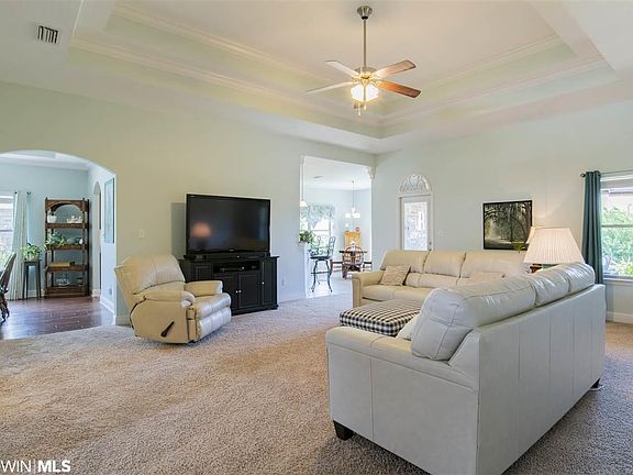 This 4 bedroom/2-½ bath (Jamison plan/w bonus room) is located in a quiet country setting subdivision in Daphne not far from I-10 and shopping. Great floorplan with all bedrooms on one level and a large bonus room upstairs that has a closet so could be used as a 5th bedroom if needed. One owner home that has been lovingly cared for. Home features granite in kitchen with gas range, high ceilings, Over-sized Great Room, stainless steel appliances, side entry garage, large covered patio to enjoy your morning coffee and an over-sized corner lot with beautiful landscaping that includes a fig tree, blueberry bush, beautiful flowers and a very private backyard! This home has almost 2700 square feet so there is room for all! Don't miss out on this one. Come see it today!