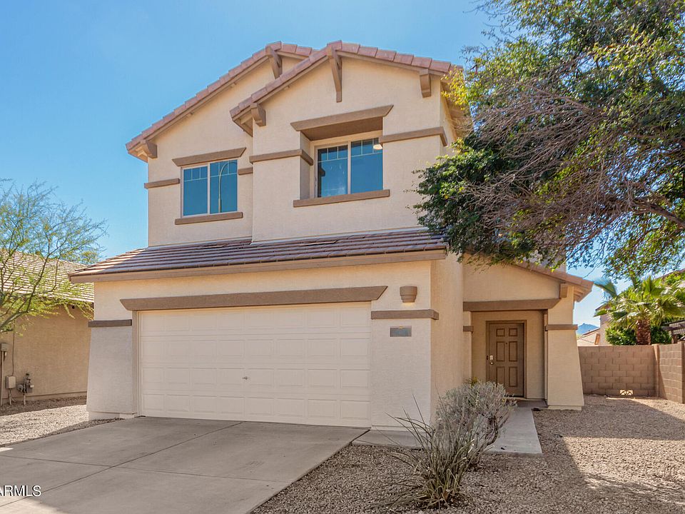 This stunning 4-bedroom, 2.5-bath home features an open layout with an additional loft space. It boasts modern upgrades including new stainless-steel appliances, quartz kitchen countertops, and stylish lighting fixtures. New carpeting in bedrooms, the loft, and stairs, along with Luxury Vinyl Plank flooring in bathrooms, living rooms, and kitchen/dining areas, provide both comfort and durability. The interior and exterior have been freshly painted, and the backyard boasts new sod. Conveniently located just minutes from Phoenix Raceway, this home offers contemporary comfort and style in a desirable neighborhood. ** A Must See ** List of Improvements: