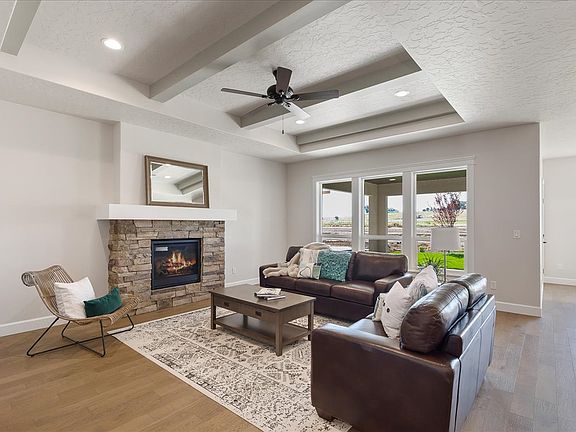 Charming and Spacious! The Galloway by Tresidio Homes captivates you with gorgeous hardwood flooring throughout, designer light fixtures, and gourmet kitchen featuring Samsung SS appliances, custom cabinetry, and quartz countertops. The Great Room welcomes you with a decorative tiled fireplace with stained mantel surrounded by custom built-ins. Pamper yourself in the spa-like owner's suite with fully tiled walk-in shower, free-standing tub and dual vanities. Includes upstairs bonus with full bath, 4 car garage, and covered patio. HERS rated for lower utility bills. Close to Lake Lowell, Owyhees, Redhawk Golf course! Photos Similar.*Pictures shown do not always reflect our included home features.
