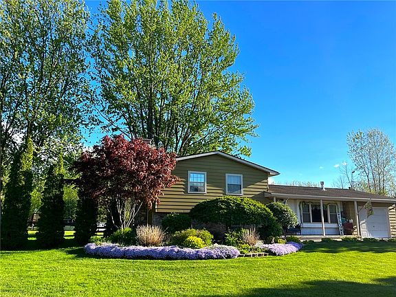 We are pleased to present a beautiful county living opportunity just 1.6 miles north of the village center of Medina, NY. Upon approach the property opens with a long one hundred foot driveway to a lovely 1,775 sqft split level home with a large front yard and even larger back yard. Continuing past the home another 250 feet the driveway leads to a 20 x 30 two level workshop garage, and room for a class A coach parking with electric hook up. Special to this property is a one-acre pond loaded with big bass and a deluxe tower hunting blind complete with electricity and a television to watch your favorite football team while you hunt trophy deer in the food plots below. A walk-in cooler is also part of the experience after a successful hunt. Approximately 12.5 acres are part of this country charmer for deer hinting with multiple food plots and over a mile of groomed trails for access to excellent hunting right out your back door. Three strategically place hinting blinds are included with the property. A little closer to the home, a patio with hot tub overlooking a wonderful view to the pond, an above ground pool, a small green house, chicken coop, and back drop of planted trees.
