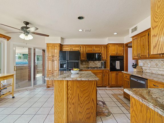Must see the two-story Opal Jenkins brick home! Soaring ceilings in the living room with a brick fireplace! Open Kitchen features a gas cooktop, built-in oven, and large kitchen island with granite countertops. Three bedrooms plus a bonus office, gym, additional living area or 4th bedroom! The owner's Suite is located on the main floor with a spa like bath. Must see Owners bath! Endless Wave exercise pool in the heated sun room. The spacious backyard featured a covered patio, Built-in BBQ Grill, Pond, and plenty of room for activities, gardening and entertaining! Quick access to I-40 and Tramway! 19 Minutes to the Albuquerque airport, 6 Minutes to Kirtland Air Force Base, and 4 Minutes to Sandia National Labs!