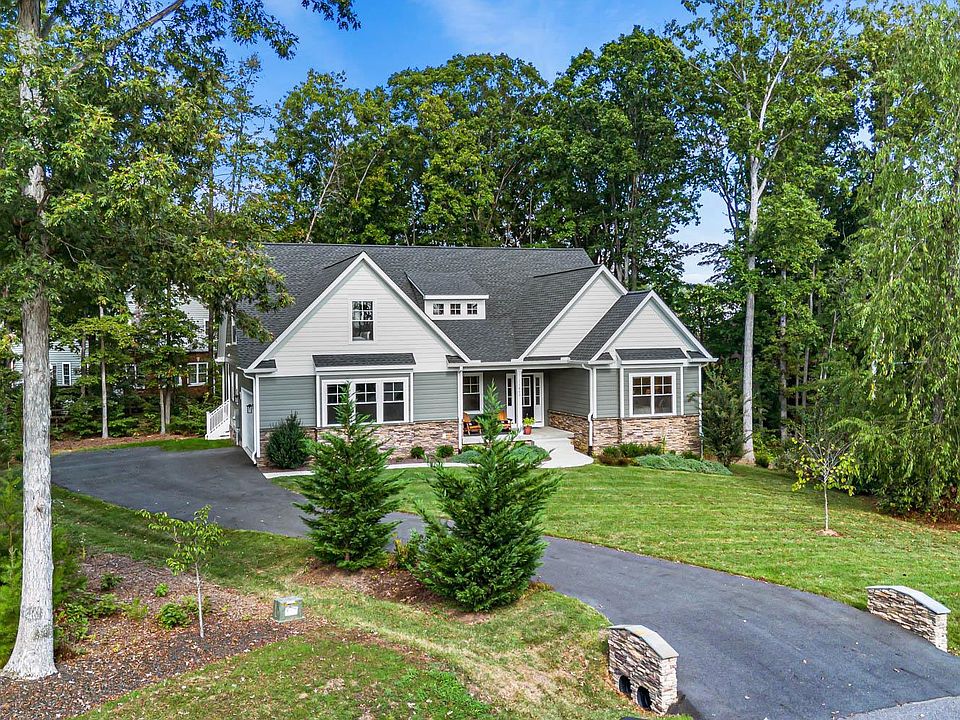 Exquisite Custom Craftsman style Cape Cod nestled on a quiet cul-de-sac lot in the prestigious, amenity-rich Fawn Lake community. Boasting 6 bedrooms, 5.5 bathrooms, and over 5,280 finished square feet of beautifully designed living space, this home offers an exceptional blend of luxury, comfort, and functionality. Step inside to an expansive open-concept floor plan anchored by a spacious great room featuring engineered hardwood floors, a striking 60" linear electric fireplace with custom mantle, and elegant built-in bookcases with storage. The large dining area, illuminated by a designer brass chandelier, flows seamlessly into the show-stopping gourmet kitchen, complete with a generous island with single-bowl farm sink, quartz countertops, tiled backsplash, under-cabinet lighting, pendant lights, and premium stainless steel appliances including a 36" five-burner cooktop, double wall ovens, and a French door refrigerator. A large walk-in pantry ensures plenty of storage, while the island seating overhang is perfect for casual meals. Off the dining area, you'll find a screened-in porch with ceiling fan which offers a tranquil space for outdoor enjoyment. The mudroom, just off the garage entry, is thoughtfully designed with a custom bench and cubbies for easy organization. A spacious laundry room includes a high-end washer and dryer, quartz-topped sink cabinet, additional wall cabinets, and space for a second fridge or freezer with water line. The main level primary suite is a true retreat, featuring abundant natural light, its own mini-split system for personalized cooling, a spa-like bath with a zero-threshold tiled shower with built-in bench and dual shower heads, double quartz vanity, separate water closet, and a custom walk-in closet with built-in dresser. An additional main-floor en-suite bedroom with full tiled bath and walk-in closet is ideal for guests or multigenerational living. A cozy pocket office near the foyer adds work-from-home flexibility. The beautiful wide oak staircase with wrought iron balusters, landing and stair lighting bring you to the fabulous upstairs loft with custom built-in double desk and large windows offers the perfect space for a homework station or creative hub. There you will also find a private en-suite bedroom with full tiled bath and large walk-in closet with custom shelving, two more spacious bedrooms, and a full tiled hall bath. The fully finished walk-out basement is a dream, with 9-foot ceilings, large windows for natural light, a recreation room with custom built-ins, recessed led lighting and luxury vinyl plank flooring throughout. The sixth bedroom is currently outfitted with a 4-person Finnleo traditional bluetooth sauna, there's a home gym with padded flooring, a full tiled bath, and additional storage space. The unfinshed utility area houses the main level HVAC system, high efficiency 80 gallon hot water heater, and whole house water softening system. Additional features include: 400 AMP electric service, Exterior with 7" insulated siding planks, shake accents, and stone detailing. All of this on a beautiful .43-acre quiet cul-de-sac lot with lots of trees for privacy. Located in the coveted gated community of Fawn Lake, known for its private lake, championship golf course, marina, beach, clubhouse, pool, tennis courts, and more, this exceptional property combines luxurious living with an unparalleled lifestyle. You'll love to call this Home!