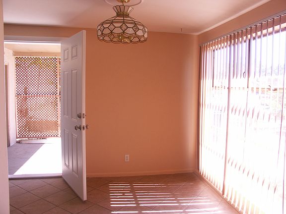 Waiting for a best offer from a pre-approved (pre-qualified by a lender) potential buyer of this corner home, which has been extensively renovated ($78K): architectural shingle roof; stucco; 2 wall-mounted gas furnaces and an evaporative cooler; oak kitchen cabinets, sink, pantry, and countertops; bathroom cabinets, sink, fixtures, and shower tile; ceiling fans; paint; vertical blinds, cordless blinds, and/or vinyl miniblinds in all windows; exterior doors, including the front door with motion detector coachlight; single-garage door with remote and keypad opener; second parking lane in driveway; landscaping (gravel and junipers); outgoing waterlines; and covered backyard patio with concrete pad. The house has washer/dryer hookups and overhead cabinets; it also has a long clothesline out in the backyard. There is a separate 16' x 45' fenced-in dog run or veggie/flower garden (that can be converted to RV storage) in the back along the street within a fenced backyard.