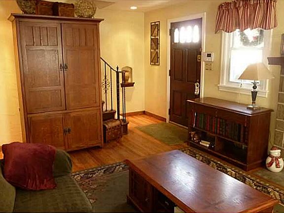 This Two-story Tudor home features Stone exterior, Slate roof, 1 car Integral Garage, Hard Wood and Wall to Wall Carpet and Vinyl floors, 1 fireplace, Gas and Forced Air heating, Central Air cooling, 3 bedrooms, 1 full bathroom, Disposal, Electric Stove, Microwave Oven, Multi-Pane Windows, Pantry, Refrigerator, Screens, Security System, Washer/Dryer, Window Treatments.