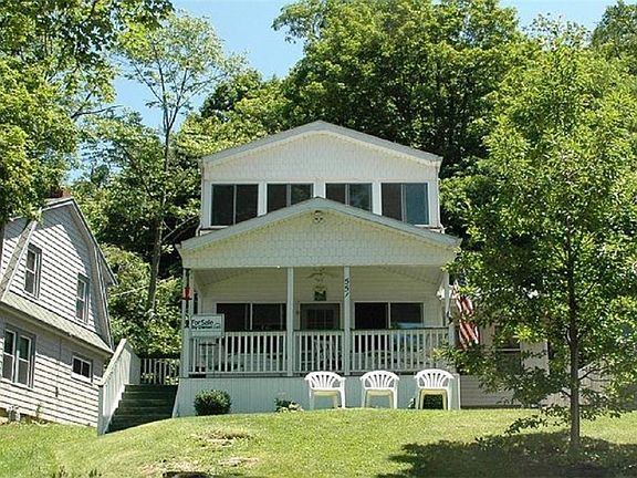 Great locations for this wonderfully updated cottage on Keuka Lake. This home is adorable and waiting for you! Newer windows throughout this home allow maximum light into each room. The living room has beautiful tongue and groove pine paneling and laminate flooring, large eat-in kitchen with vaulted ceiling, light, bright and airy! First floor master bedroom and bathroom. Upstairs you will find another full bath, 2 bedrooms and a sleeping porch. Outside you will find a nice sized yard, vinyl siding, and full front porch for sitting and enjoying those Keuka Lake sunsets! The 25 feet of waterfront offers permanent dock and plenty of grass space for lounge chairs or picnic table! This is a wonderful neighborly community close to so many towns and amenities! Make it yours today!
