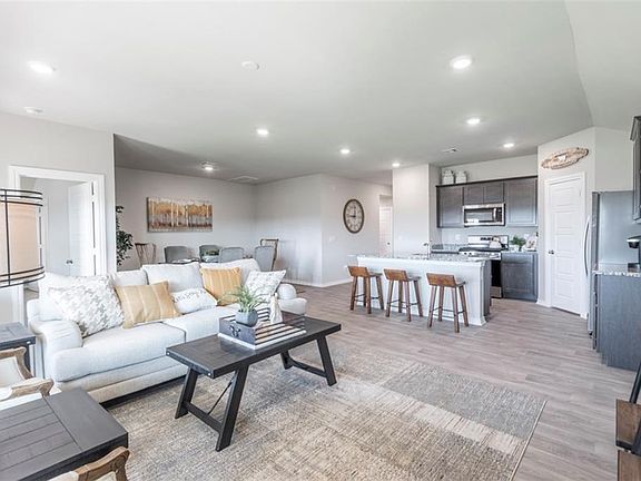 Enjoy the beauty of curb appeal from the outside and the comfortable open concept on the inside with this modern-open concept Justin floor plan in Mustang. The gourmet kitchen has dark gray stained cabinets with eye catching granite countertops, large island with overhang for seating, Whirlpool stainless steel dishwasher, gas range, built in microwave, refrigerator and aspacious walk-in pantry. Relax in the massive primary bedroom, just off the back of the house, and enjoy the adjoining en-suite with a luxurious 5-foot shower. Home features a Rinnai tankless water heater, washer & dryer, designer marble vanity tops in bathrooms,2" faux wood blinds throughout and smart home package. Full landscaping, irrigation system, and privacy fence included. Neighborhood ammenities include multiple playgrounds, pool and pool house. Photos shown here may not depict the specified home and features. Elevations, exterior/ interior colors, options, available upgrades, and standard features will vary in each community and may change without notice.