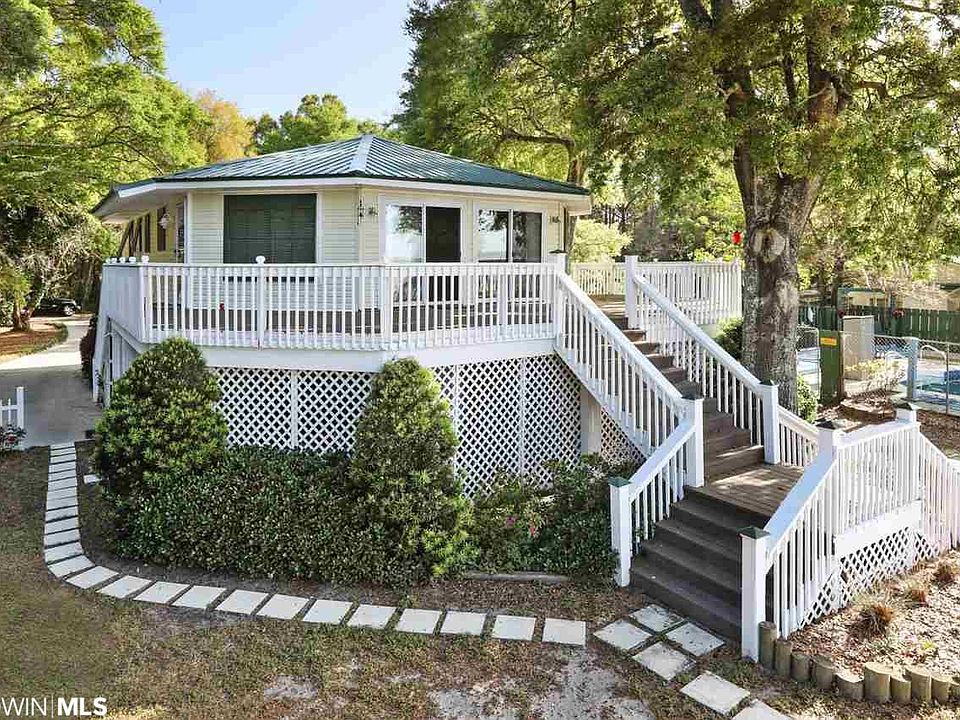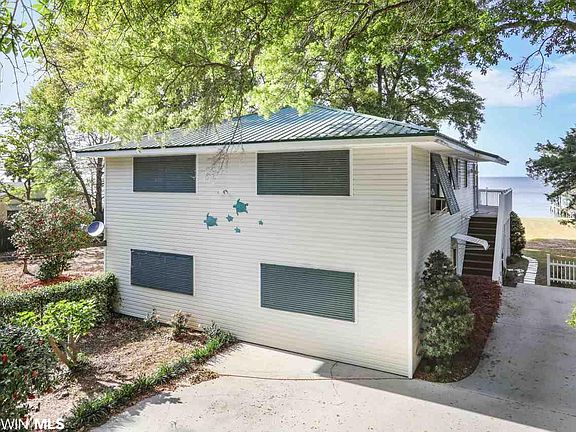 Completely renovated, BAY FRONT home with spectacular views of Mobile Bay! Ideal for fishing, boating, and enjoying amazing sunsets! This property features an inground swimming pool, 75' pier with boat dock/boat lift/bulkhead, large air conditioned workshop, and a downstairs guest suite! The upgraded kitchen is equipped with granite counter tops, travertine backsplash, all new stainless appliances, and a spacious pantry. The living area features a gas log fireplace and opens up to the back deck where you can sit and enjoy watching the dolphins and other wildlife. The guest suite was added in 2013 and features a large living area, dining area, huge bedroom, and full bath. Not only can you enjoy the bay, but you can also enjoy swimming in your very own inground swimming pool! Pool has a new liner, filter, and pump. The large air-conditioned workshop underneath the home is a nice extra! Other features include: detached one car garage with power, sprinkler system, and 2 wells. All flooring and light fixtures throughout the home are new. New metal roof installed last year. HVAC was replaced in 2014.