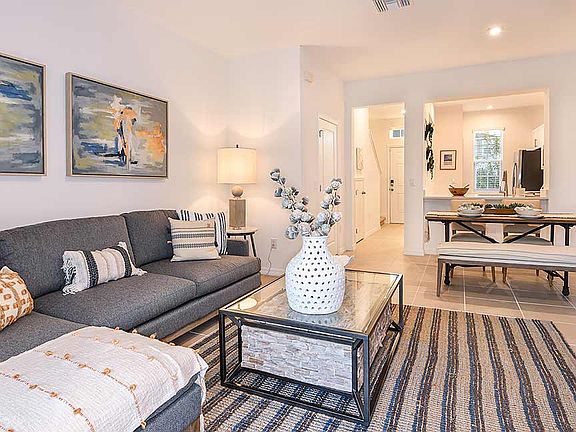 The Hawthorne two-story townhome features 1,116 sq. ft. with 2 bedrooms and 2.5 bathrooms. Enter the home at the main level where you are greeted by a foyer and designer kitchen. The kitchen overlooks the combined dining and gathering rooms, which lead to a cozy covered lanai. A half bathroom is also located on the main level. Upstairs, you will find two spacious bedrooms, both with private bathrooms and walk-in closets. The laundry area is also located on the second floor for convenience.
