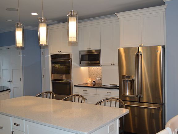 This house has everything! Fully renovated kitchen in 2016 with 7'x3' island; all GE Profile appliances (gas stove, double wall oven, quiet dishwasher, french-door fridge, & microwave). 42" cabinets; soft close doors/drawers; maintenance free quartz countertops; dry bar w/ ice maker and glass rack; double-door pantry with light; under-counter lights on dimmer; speakers in ceiling; crown molding; eat in kitchen. 20x20 screened porch off kitchen with cable hook up; outdoor speakers; 2 skylights and 2 remote ceiling fans; private, peaceful setting. 1st floor has 9' ceilings; office with built in cabinets/bookshelves and 9' desk w 2 knee holes and drawers; laundry room and new mocha-stained hardwood floors in DR, Kitchen, FR, and hall. Living room and office has french doors for beauty and privacy. Family room with sliders to screened porch; gas remote fireplace; 2 story brick front. 2nd story balcony looks down into family room. Second Floor has huge master bedroom (19'x14') with additional 10x9 sitting area; 12'x9' dressing room, extra-large master bath with deep soaking tub and his/her sinks. Basement has three distinct play areas plus substantial unfinished storage area.