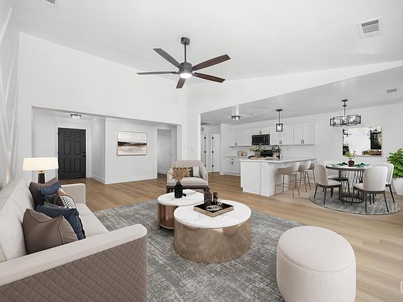 This stunning corner lot split-wing home offers 4 bedrooms, 2 bathrooms, and a versatile office space. Thoughtfully upgraded, it features fresh interior paint, new wood-like flooring, stylish light fixtures, and a beautifully updated kitchen with new cabinets, quartz countertops, and stainless steel appliances. The primary suite boasts a new tiled shower, dual vanities, and modern mirrors. Additional highlights include PAID-OFF solar, ensuring energy efficiency and savings. Nestled in a desirable neighborhood near shopping and schools, this home offers both convenience and comfort. The spacious layout provides ample room for relaxation and entertaining, while the upgrades add a touch of elegance throughout. Do not miss this incredible opportunity to own a move-in ready home in a prime location. Schedule your showing today!