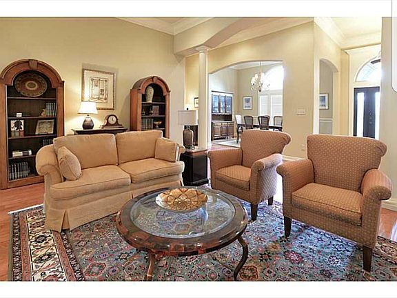 Stunning Riley Farm one level home on 1 acre! Home features 2 liv areas, 4BR/2.5BA, open plan, split BR, formal din. Kitchen features Granite counters, double oven, pantry, maple cabinets, stainless appliances, Opens to hearth room for entertaining with WBFP. Liv rm w/soaring ceilings, WBFP, hardwood flooring. Huge master w/sitting area, elegant bath w/large walk-in closet. Covered patio w/outdoor liv area, custom FP, built -in BBQ, privacy fenced w/private backyard. Cent vacuum & security system, Oversized side entry 3 car garage. Brick, Rock and Copper exterior. 1 level in Riley - A must see!