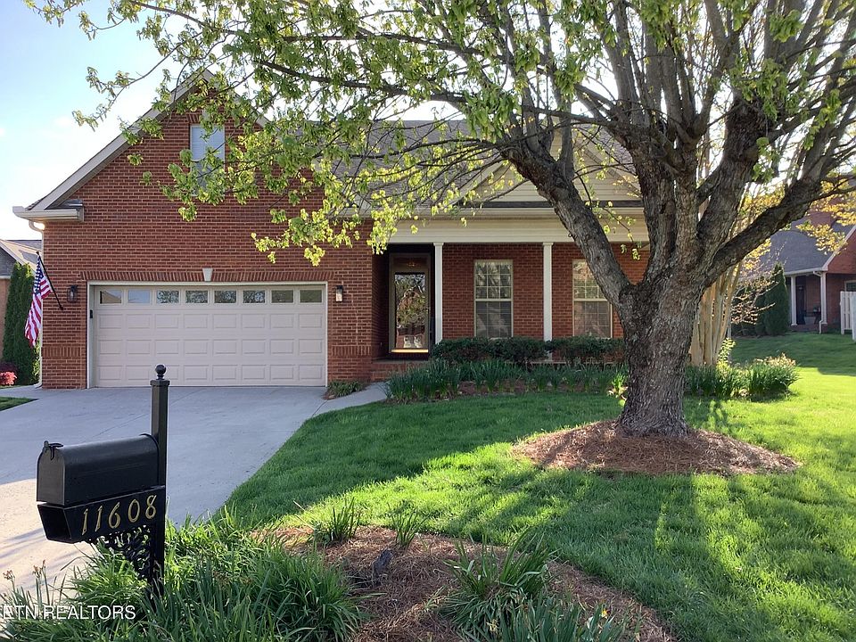 Farragut treasure, one level living in a maintenance free community. Surround your self with a well kept neighborhood tucked away in a serene setting but with all the amenities of Farragut living just 5 minutes away. All brick, open concept 3 bedroom home with eat in kitchen, dining area in great room with vaulted ceiling that goes out onto covered patio with lights and electricity. Large master bedroom with double vanity in bath and step in shower with 2 seats. 2 guest bedrooms share bath between them. Wide hallway welcomes you into this lovely home that immediately makes you feel at home. Fresh paint throughout, all new appliances in kitchen stay. 2-10 home warranty has been maintained throughout ownership and will transfer to buyer. The clubhouse with pool and tennis court is literally across the street, 3 houses away. Never mow or weedeat again. It is all done for you, which also means your neighborhood always looks well groomed.