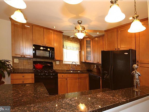 Lovely split foyer in Rosaryville Estates. Covered front stoop. Hardwood floors on main level. Remodeled kitchen with dual steel sink. 42 inch cabinets, ceiling fan and granite counters. Hall bath with ceramic tile, new sink and commode. Owner suite with attached full bath featuring a shower, new sink, commode, tile and mirror. Fully finished lower level with rec room, upgraded powder room, laundry/storage and private side exit. Many new light fixtures. Insulated windows and doors. Fenced yard with shed and mature trees. Two sump pumps. Must see!