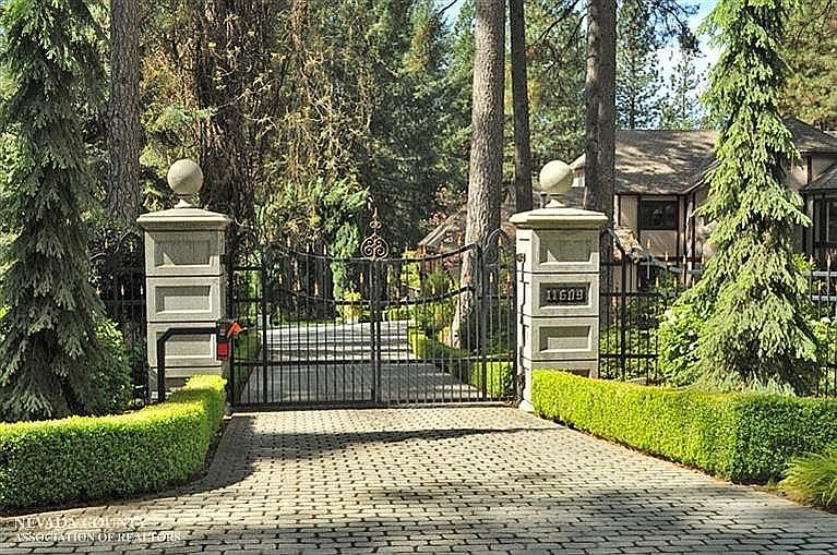 Breathtaking and stately Tudor Style home on a remarkable 5.76 acre fenced and double gated estate parcel located just 1.6 miles to Grass Valley! Starting with the pillared, wrought iron gated entry and cobblestone circular driveway leads to this amazing 5000 sf 5 bedroom home w/2-car garage, 1200 sf detached 2 bedroom guest house with 4-car garage and beautiful, large inground swimming pool, serene English Rose Garden and total privacy! Entry features two story rotunda with floor to ceiling windows bringing the outside in, marble floors and German Crystal chandeliers. Formal dining room looks over the large patio and pool from 8' Pella glass sliding doors. Lovely kitchen has marble counters and backsplash, Thermador double ovens, Sub-Zero built-in fridge, induction range and lots of counter space and cabinets. Stunning curved wood staircase leads to the large Master bedroom with private veranda overlooking the landscaped yard. Huge master closet and second walk in closet, plus walk in marble shower. Pella windows and intercom system throughout including into guest unit. RV hookup and Rose Garden