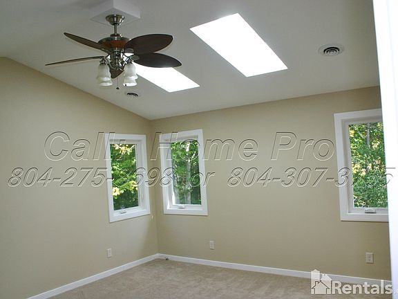 AVAILABLE July 1, 2016. Beautiful mild contemporary home (built by Mike Dumont) in the Arbor Landing lakeside community. This home has been COMPLETELY remodeled and upgraded from one end to the other, both inside and out! TONS of storage! Fully remodeled, upscale kitchen with premium grade Stainless Steel appliances, raised panel maple cabinets, pantry closet, etc. Hardwood and upscale porcelain tile flooring throughout. NEW Energy Efficient casement WINDOWS, NEW Natural Gas Heating System, new Central Air system, new roof, gutters, etc. All three baths have been remodeled with custom shower, beautiful tile work and other finishes. Living room (14x12), AND Den (17x15) w/fireplace, plus Dining Room. Custom deck overlooks private wooded back yard area with partial lake view. Asphalt drive. Large attached 2 car garage. Master bedroom with THREE CLOSETS, and MASTER BATH SUITE with oversized tile shower, soaking tub, double vanity, AND another WALK-IN closet! If you are looking for a beautiful home in a convenient, lake front neighborhood, close to restaurants and shopping, this is it! You must see this home to really appreciate the size, quality and all it has to offer. This house is way better now than when it was first built. No more "builder grade" stuff to be found here. Call the owner/landlord (Bryan Ray) at the office phone 804-275-8698 or call (or text) on the cell phone at 804-307-3755 with any additional questions or to set up a private showing of this beautiful home.