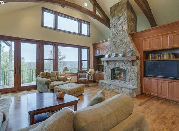 - Features: Fireplace, Hardwood Floors, Vaulted Ceiling
