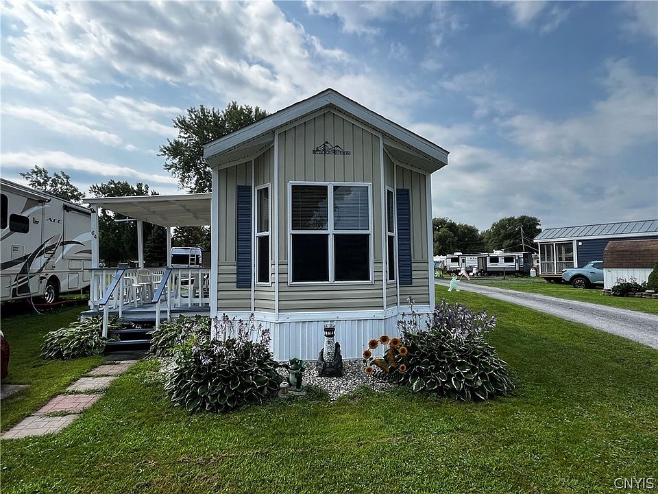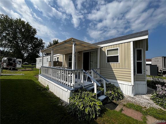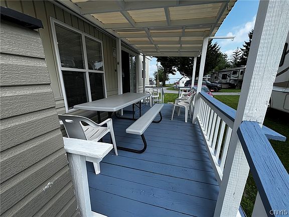 Take a look at this opportunity to own a 2001 Breckenridge Park Model home at the seasonal Willows on the Lake RV Campground right on Lake Ontario! You have the benefit of being on the water, without all the land/school taxes that go along with it! This model is a one bedroom and one bath with a combined kitchen/living-room/dining on a concrete slab. What's nice about this model is you can turn the couch into a bed and near the office space is a divider that you can pull out, making it more private for when company stays over. Enjoy your hot summer days either inside with the central air, or enjoy the view of the Lake outside on your newly painted porch. Currently the park lot rent is $3,250 a year. Included in that charge is water, septic, trash, WiFi, and laundry. Enjoy all the water activities the resort has to offer, there's two docks and a ramp to put your boat in or walk down and put your kayaks/canoe in! Another bonus to this lot is the extra space to the right, making it easier to park your cars. A new water heater is being installed and the roof is only 5 years old!