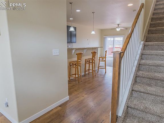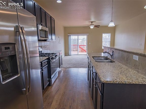 Welcome to your new home in the Spring Creek neighborhood!. This 3 bed/3 bath/2 car garage home is located near Fort Carson. There are also parks and hiking trails close by. This charming home features hardwood floors and new carpeting. The kitchen features solid slab granite countertops, a breakfast bar, tons of cabinets, and a spacious pantry as well as stainless steel appliances. The xeriscaped yard and solar panels add eco-friendly appeal. The unfinished basement, plumbed for a bathroom, offers customization possibilities. Schedule a viewing today to experience Colorado living at its finest!