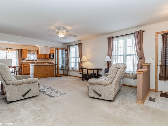 Ranch townhome in Waterford Pointe conveniently located to shopping and highways. Open floor plan with large living area that is open to the eat-in kitchen. End unit with windows overlooking an open area.. Kitchen has breakfast bar and eating area, lots of counterspace and convenient main floor laundry. Private patio off of kitchen. Two bedrooms and two full baths. Primary bedroom with walk-in closet and full bath. Attached garage and unfinished basement. Property is being sold "as is" but home warranty included.