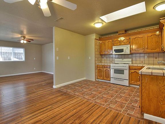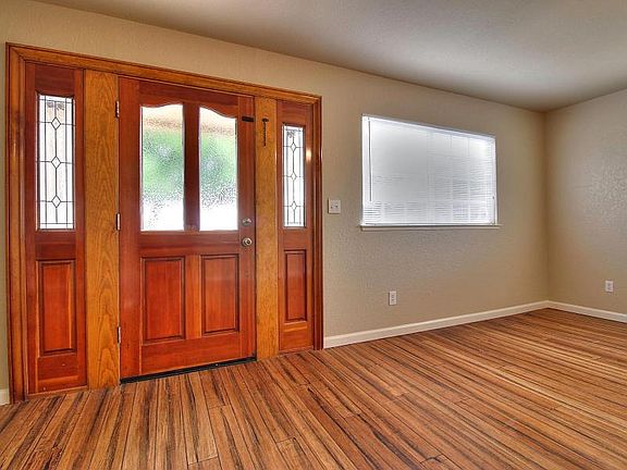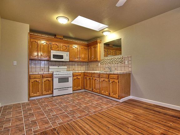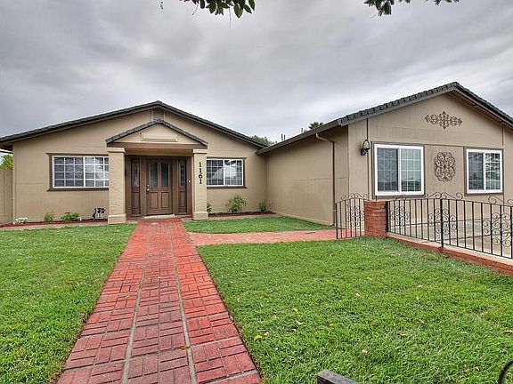 Spacious and revamped three bedroom, two bath, 1237 square foot home with garage conversion which adds two additional rooms and a second kitchen - this property can function as two separate units. The total count is 5 bedrooms, 3 baths. Located across the street from school, near shopping and easy commute access. Attractive wood laminate floors, new paint and carpet, ceiling fans, newer windows, fruit trees, covered patio, storage shed.