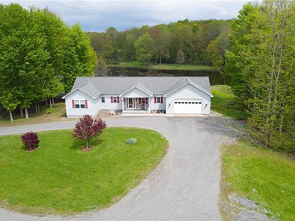 Custom & nearly new, 12 year young ranch perfectly set on almost 40 Acres. The setting will take your breath away as you relax in the Sunroom overlooking your private pond. Amazing green meadows & wooded areas give you outdoor options galore. Open Floor Plan, 3 Bedrooms (w/4th option), 2-1/2 baths & 2 car attached garage. You will love the 1st floor Master Suite w/Jacuzzi Tub, Double Sinks & Spacious walk-in Closet. Take your pick of the convenient 1st floor or Basement Laundry. Features include, Hardwood, Marble & Radiant Flooring, Granite Counters, S/S Appliances, Wine Chiller, C/Air, Gas Fireplace, Hot Water on Demand & 2 BONUS In-Law Suites. The detached garage gives you 4 bays & a full upstairs loft for storage. Take a tour & come see everything this property offers!