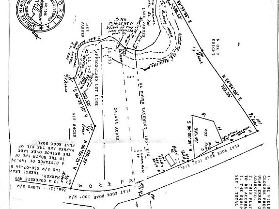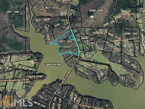 Rare opportunity on large acreage tract directly on Lake Varner (850 acre reservoir). Estimated +/- 1,370 feet of lake frontage and estimated +/- 1,500 feet of road frontage on Flat Rock Road. 24.45 acres per county record and survey plat of property. One of the last remaining development opportunites on the reservoir or an exceptional estate lot for privacy and large water frontage.
