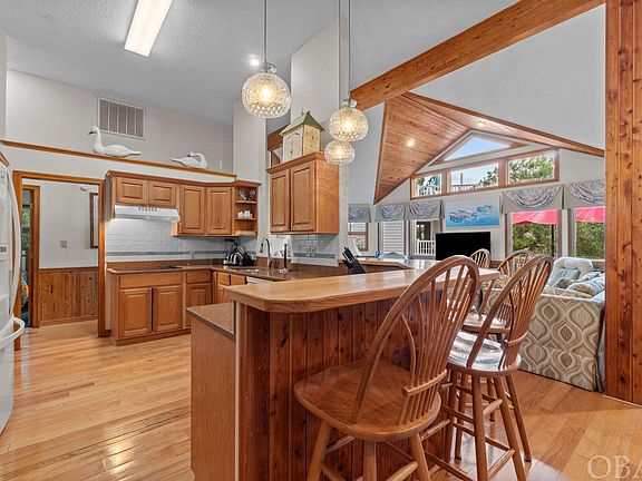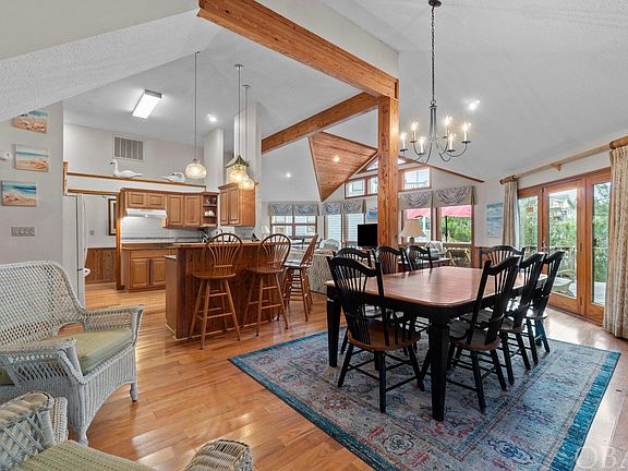 This stunning octagonal 5-bedroom ocean-view home, nestled within the Corolla Light Resort subdivision, is a mere 150 steps away from beach access. This home features beautiful hardwood floors, granite counter tops, new windows in the living area and master bedroom, new exterior paint (2019), all new plumbing (removed polyethylene pipes), new roof (2023), two new HVAC units (2023), new dishwasher (2023). The luxurious owner's suite occupies the entire top level, offering breathtaking views of both the Corolla lighthouse and the ocean. On the mid-level, you'll find the spacious great room, kitchen, and four bedrooms, all leading out onto the multi-level decking where you can relax in the hot tub or the hammock while soaking in the peaceful surroundings. The lower level boasts an open gathering and game area complete with a private half-bath and kitchenette. The home has been used mostly as a second home and rented just a few summer weeks. Corolla Light Resort offers an array of amenities, including a guardhouse entry, two oceanfront outdoor pools, one soundside pool, oceanfront restaurant, putting green, shuffleboard, horseshoe pit, playground, outdoor tennis courts, indoor tennis courts, and basketball courts. Additionally, there's an indoor/outdoor sports center offering a variety of activities.