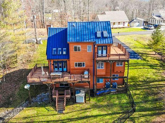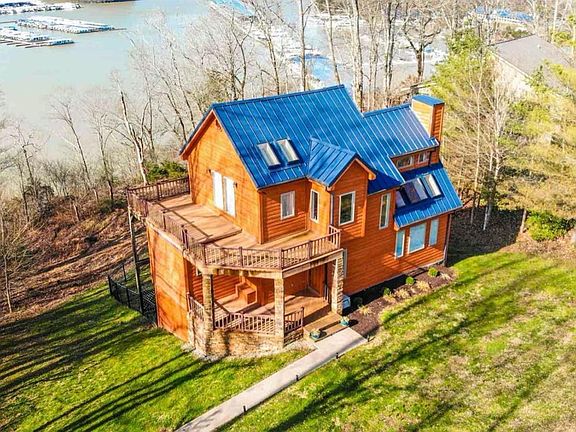 Incredible year round lakeview!!! Overlooks State Dock and Jamestown Marina within 2.5 miles drive from Jamestown Marina. This beautiful 3 bedroom (potential 4) 2.5 bath home offers multi level lake living, the main floor boasts an open kitchen with stainless appliances, dining and family room with specialty ceilings, skylights, hand scraped hardwood flooring and a stone fireplace. There are 2 bedrooms and a full bath on the main floor. On the upper level you will find a private master suite, gorgeous master bath with walk-in shower. Enjoy private temperature control with separate HVAC on this level of the home. The full finished basement has space for a 4th bedroom and additional living space, a half bath and laundry room. Wrapped around the exterior of the home is 1700 square feet of Trex decking where you can enjoy views of Lake Cumberland. Each level has access to the (low maintenance) decking. As a bonus the large backyard is fenced!!!! Home warranty offered.