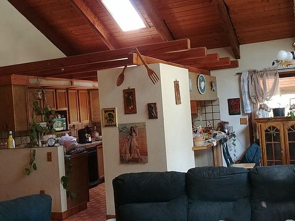 The home features 2 bdrm 2 bath on the main floor with a full daylight basement that could be completed as you wish. The home needs work but has good potential. End of the road privacy. Fenced but need some work. Large shop/garage approx 30x42 and a barn. Additional shed and a chicken coop. Fireplace with insert as well as electric and wood furnace. Please be cautious of rot on the deck and balcony.