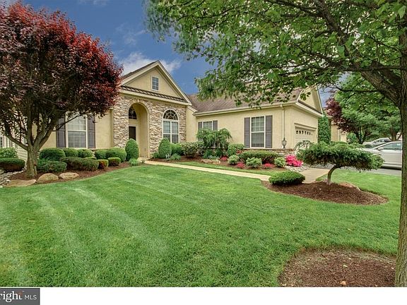 Only the very best is yours in this stunning stone front Washington model home in Heritage Creek! Custom features are throughout this beautiful home with open floor plan. Lovely foyer entry separates the formal living room and formal dining room with gleaming hardwood floors, custom window treatments and lighting. Hallway off foyer with its architectural feature leads to gourmet kitchen with island, 42 inch cabinets, granite countertops, kitchen backsplash with custom painted switch covers, large pantry. Bright, cheery breakfast area overlooks family room w/sliding door to patio. Along side kitchen is study/den/office with french doors and a transom for added light. Spacious master suite with two fully custom built-in closet designs. Master bath with separate granite top vanities, extra large shower w/designer upgraded tile and separate soaking tub. Second bedroom w/spacious closet, great for guests and conveniently located to beautifully tiled designed hall bath, features granite top vanity. Laundry room with inside access to two-car oversized garage. Furnace and Central air replaced in September of 2017. Heritage Creek is a 55+ community in Bucks County and Warwick Township. This active adult community has an abundance of indoor and outdoor amenties. Residents of Heritage Creek have access to all of its amenities that include a Ballroom/w catering kitchen, card room, craft room, library, club with two full size pool tables. Marquis Club and spa include indoor and outdoor pool, hot tub, sauna and fitness room. Outside residents can enjoy bocce ball, tennis and suffleboard at one of the outdoor courts. This Bucks County Community is within minutes of Peddlers Village, Historic Doylestown.