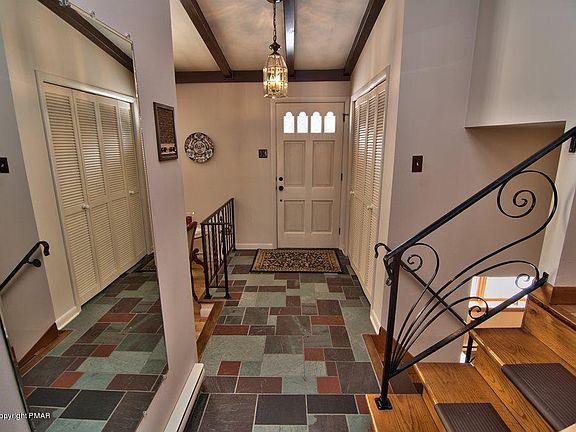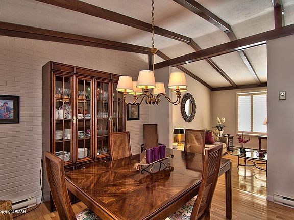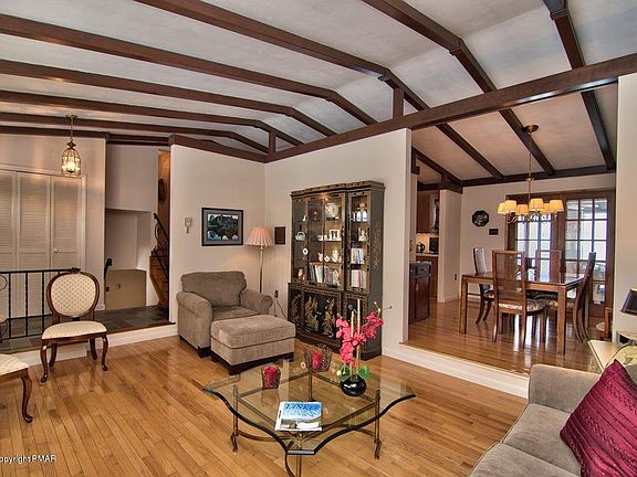 Lovingly Built & Lovingly Cared For - WOW - Super LOW Taxers for this Gem is located in the North Pocono School District and this fine home offers Gleaming Hardwood Floors throughout / Flexible Living Spaces throughout / Unbelievable Construction using 1/12 Sheathing and ALL interior Walls are also insulated ! Solid Redwood Beams not only support but beautify the Main Living Spaces; Unique Walnut Cabinetry in the kitchen; Dry as A BONE lower level with Cozy Stone Wood Burning Fireplace; Tons of crafting / workout / utility / storage space! CALL TODAY and YOU can be the next Lucky Buyer of this fine home!