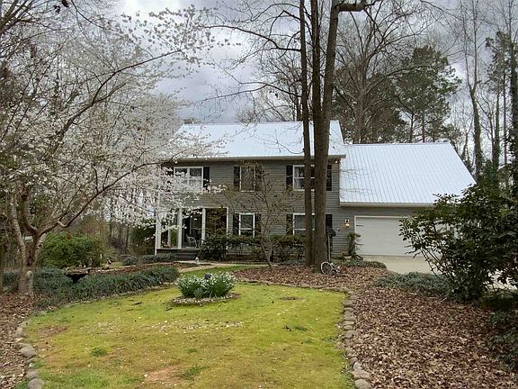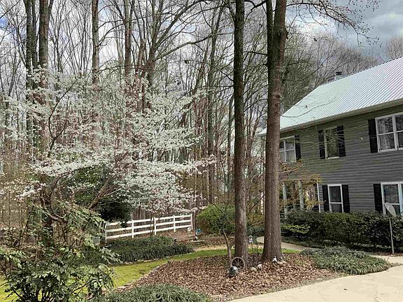 Charming traditional 2 Story Cottage Tucked Away On Over 4 Plus Acres Of Land Up On The Oconee River On Lake Oconee. The Setting Looks Like A Park With Gorgeous Ornamental Trees and Shrubs and Gardens. The Parcel Includes a 3.21 acre fee simple lot and an approximately 1 + acre Georgia Power Contour Easement with a Access Strip Lease that runs $100 a year for 15 year Increments. This Lovely Home Is Perfectly Situated To Capture The View OF The Lake. There Are Many Outdoor Living And Sitting Areas To Take Advantage of the Natural Beauty of the Land and the Lake. The Home Is On The Front Part of the Tract and the Land Falls Gently Away To The Gorgeous Flat River Contour of Open Land As You Head Towards the Lake. With Over 500 Feet of Water Frontage The Wide and Long Views are Breathtaking. Water Is About 2 Feet At the End Of The Dock When Low But Quickly Deepens Only A Short Distance From the Edge of The Dock. This Lovely Home Features A Wonderful Living Area That Flows Well Between The Living Room, Dining Room and Kitchen. It IS Ideal For Entertaining With Plenty Of Space To Expand Onto The Large Deck Across The Back Of the Home. The Master Suite Is Upstairs and Overlooks the Lake. The 2 Other Nice Sized Secondary Bedrooms Are Upstairs and Share A Hall Bath. There Is Also A Large Bonus Room That Can Serve As A Flex Room Upstairs as well. The Laundry Room Is Up Too. The Home Has 2 Staircases. The Sellers Have Done Much Updating During Their Tenure The Added LVP In The Family Room. They Also Added New Appliances and Gorgeous Tile Back Splash in the Kitchen. They Just Put on New Metal Roofs On The House, Detached Garage and The Storage Out Building, Plus New Gutters, And Also Replaced 2 Hot Water Heaters and the Second Floor HVAC System. This Home is So Warm And Inviting. The Open Kitchen Overlooks The Living Room Areas and the Long View of The Lawn to the Lake.