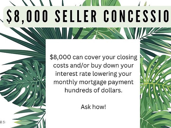 $8,000 in seller concessions now offered. Want to stay under a certain mortgage amount each month? Ask how using these seller concessions can help get your mortgage payment down to a more comfortable amount by buying your interest rate down. Save hundreds of dollars every month for the first two to three years with a lower interest rate.