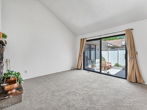 Looking for a home in the highly desirable Sierra Loma condo community? Here's a single level, clean and cozy 3 bdrm, 2 bath condo with a 2 car garage in NW Reno! This unit is ready for occupancy with brand new carpet and is quietly tucked away off the main street, offering peaceful views of the scenic, wooded ravine. Great floor plan with separation between bedrooms, and vaulted ceilings in the primary bedroom and living room, giving it a more spacious feel. Livingroom has a wood burning fireplace and access to the private courtyard patio with a raised garden box, which is also accessible through the primary bedroom, as well as a man-door to the garage. Kitchen includes granite-look Formica counter tops, electric flat top range, dishwasher and additional cabinetry for extra storage. Washer, dryer & kitchen refrigerator included in sale. The HOA takes care of the exterior maintenance, landscaping, snow removal, and provides access to two swimming pools and a clubhouse. RV parking available for an additional fee. Located near plenty of street parking for guests and just a 10 min drive to UNR or downtown Reno. Only the garage shares a common wall and its actually deemed to be a "townhouse", on its own parcel, so does not need "condo approval" for lending.