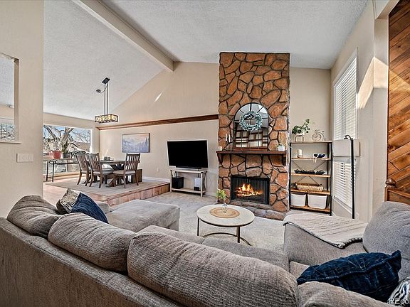 Updated, remodeled and backing to a grassy common space in Lakewood's Renaud Place! The upper level of this townhome boasts a remodeled open kitchen with laminate flooring, quartz counters, new appliances, gas range, wine cooler, updated fixtures and fresh paint. The adjoining dining area has a vaulted ceiling, laminate flooring, a new fixture and leads to the composite back deck. With the stairs from the deck, it's very easy to enjoy the large common area behind the home! The family room has newer carpet, a wood fireplace surrounded by a stone wall and a gorgeous Murphy bed with built in shelves and closets on each side - perfect for guests as there is also an updated full bathroom right next to the bed! The lower level has also been updated and features a primary bedroom with natural light from the garden level windows, a ceiling fan and an expansive 11' X 8' walk-in closet. The 3/4 bathroom has been remodeled and the huge walk-in shower is stunning. An additional bedroom and laundry room (washer & dryer included) finished out the lower level. The 2-car attached garage is drywalled, has cabinets and great storage in the ceiling which can be accessed with a new ladder. Renaud Place is located nearly right in the middle of I-25 & C470 off Mississippi, providing easy access to downtown Denver or to head west into the mountains. Just minutes from Belmar and other amenities as well! Check out the floor plans with the photos as well as the 3D tour and come see this one quick!
