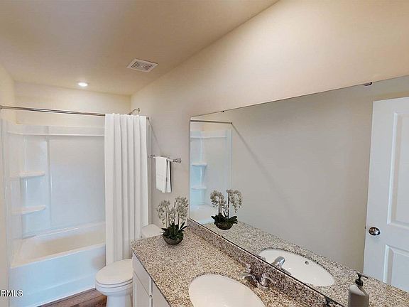 Photos shown are of a similar model, not the subject property. Designer style kitchen with Aristokraft cabinets, granite countertops, and island for additional storage. Shaw hardwood flooring flows throughout the main downstairs living areas. Flex space can be used for a home office for working virtually. Owner's suite features bathroom with a 5' fiberglass shower, dual sinks/vanities, cultured marble countertops, and a walk in closet – all EASY TO CLEAN. All bedrooms and laundry room are upstairs for your convenience. We are located at the edge of historic downtown Beaufort and minutes from the US Marine Base on Parris Island and the Marine Corps Air Station.