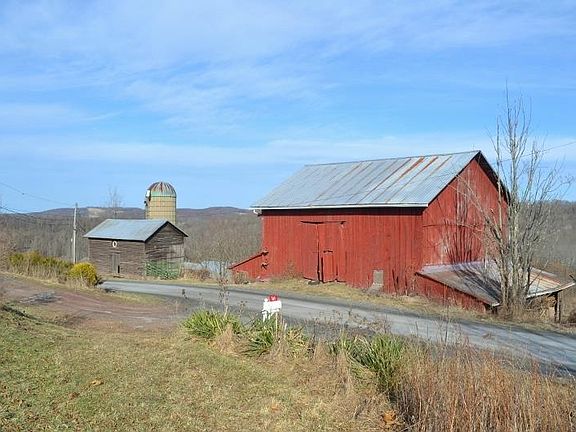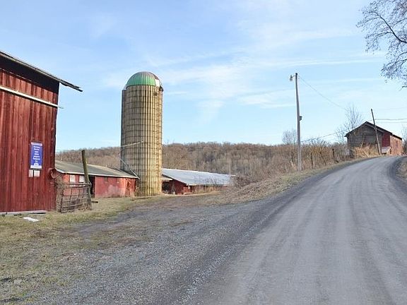 78 +/- acre farm with 4 barns, Quonset hut, and a 4 bed/1.5 bath Ranch home with attached garage in Albany Twp. Lower barn has indoor riding arena, tack room, 6 horse stalls, & 1 box stall. Middle barn has milk house, silo, and set up for veal calves. Quonset hut for equipment storage, high tensile fence installed around pasture in 2012. Two ponds, a spring, and 2 drilled wells for water. Abandoned mobile home also has water and septic. Small shale pit for personal/family use. Hayfield up behind house has a fantastic view of the countryside.