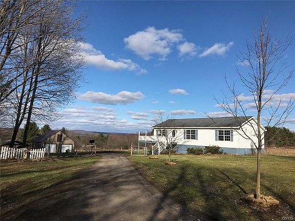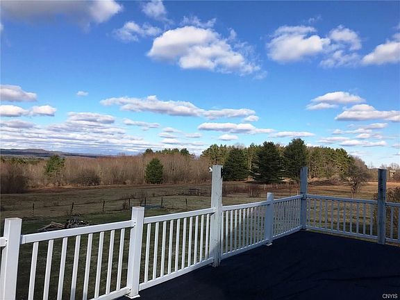 RARE FIND! Secluded and private setting (nearly 23 acres!), this home sits down the end of long driveway well away from the road. This 3 bedroom / 2 bath* home, offers amazing views of Tug Hill and the countryside. Kitchen has plenty of cupboard and counter space, separate laundry off kitchen, and large living room w/new laminate flooring. The large windows throughout this home offer beautiful views and plenty of light everywhere. And you'll LOVE the house length back deck which overlooks your ponderosa! Barn: 30 x 28 barn offers 2 horse stalls and additional storage on opposite side. Large pasture area with electric and (barb wire) fencing. Run in shed in pasture as well. Great horse property. (*2nd bath needs to be hooked up, tub is installed, needs toilet)