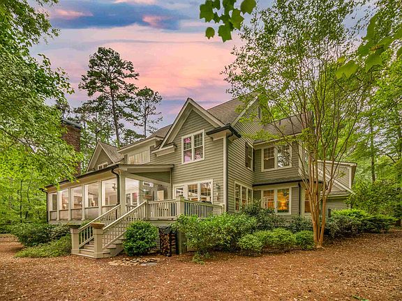 Reynolds Lake Oconee lake access home with 4 bedrooms and 4 1/2 baths and day-use dock offering a big water lake view from every bedroom. The open kitchen, dining, living room and keeping room have hardwood floors and also offer bright lake views. The living room has vaulted ceilings, a gas fireplace and custom built-in cabinets. Large screened porch with fireplace has views of the backyard and lake. Porch opens to expansive deck with stairs leading down to the back yard. A short walk from there to the dock where you can tie up a boat and have ready access to the lake! The master on the main level has walk in closets and sliding doors that open to the screen porch. Upstairs there are three bedrooms and two full baths as well as an open space that could be used for multiple things. Over the garage is a large bonus room with full bath and kitchenette that could be used as a game room or in-law suite. House includes whole house water softener system and reverse osmosis in the kitchen. Located in an established and quiet section of Reynolds surrounded by wildlife and beautiful trees and only a short walk to the Saddle Ridge walking trail. From the dock look across the lake to the Great Waters golf course. Great place to watch the Fourth of July fireworks! Two minute boat ride to Linger Longer Marina. Seller is making a Club membership available.