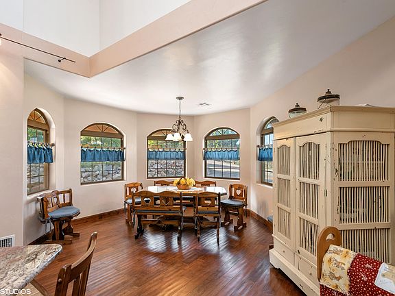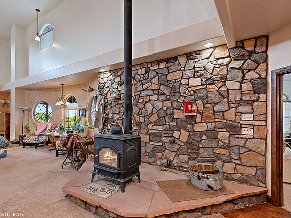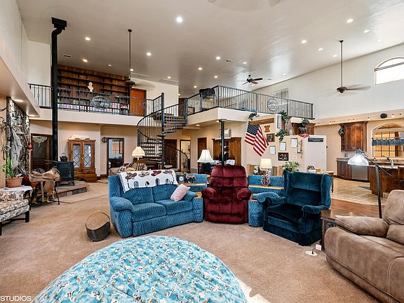 Escape the city life to open rural living with unbeatable panoramic views. Your eye is sure to catch the detail of the custom wrought iron railing & spiral staircase, real wood floors, original rock wall w/ wood burning fire place. Gourmet kitchen w/ double ovens & granite counters. Built in custom bar stools, cabinets & book shelf. Outback you have a greenhouse, garden, 50x50 shop & 3 car garage.