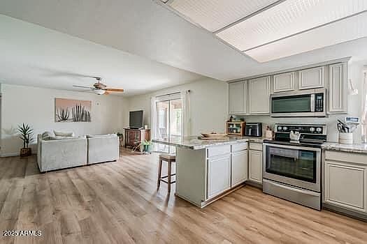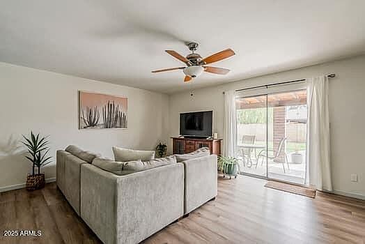 True 4 bedroom home on a huge cul-de-sac lot in beautiful Dobson Ranch features neutral colors and charming accents throughout. Step down into the sunken living room or move to the spacious great room and kitchen updated with granite countertops, stainless appliances & easy care floors. Bedrooms have been recently painted,, with newer flooring and fans. Updated tile and decor in both baths. Primary bedroom features light flooring, lots of light and separate exit to the patio. Relax on the shady covered patio or in the cool diving pool. RV gate and plenty of parking for the toys on the oversized pad. Yard and garden are on timers, newer roof, AC, and water heater for worry-free maintenance for years. All this plus the many amenities of Dobson Ranch at such a great price!
