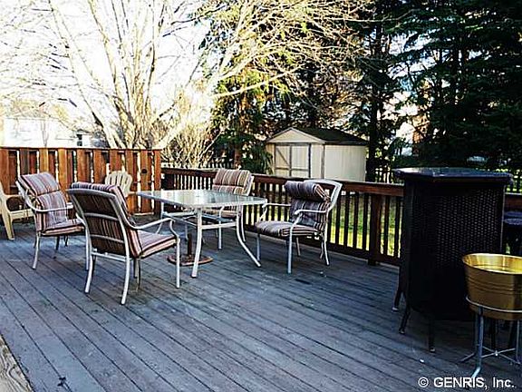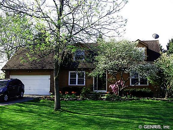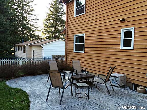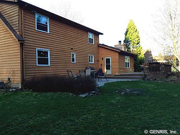 Move right into this Beautiful home and add your finishing touches. Near I-390. Features eat-in kitchen & formal dining, new stainless appliances, and huge family room with dramatic stone fireplace. 1st floor bed and full bath, perfect for in-laws, guests, or office. 2nd floor boasts 3 add'l bedrooms and 2 full baths; lounge in the luxurious Jacuzzi tub. Convenient 2nd floor laundry and huge walk-in closet. Partially finished basement. Relax in the private backyard on the 16"x27" deck and spacious stamped-concrete patio. Other: Invisible pet fence. furnace '05, thermopane windows '09.