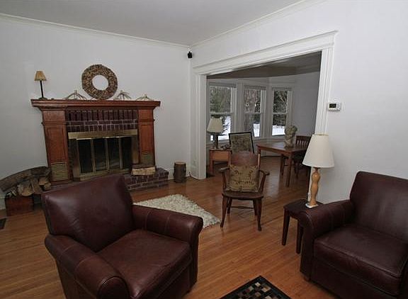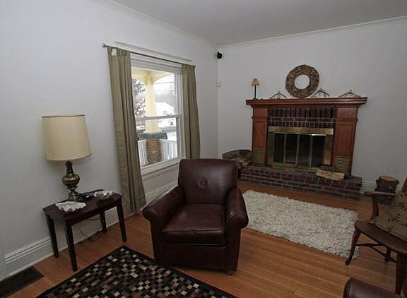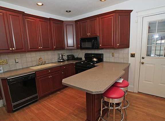 Perfect Colonial inside and out on 1 1/2 acres.Features of this home include crown molding, high ceilings, open front porch, hardwood floors, bay window, woodburning fireplace,cherry wood and ceramic kitchen with Wilson Art counters.2 car detached garage the home cinema sound system installed with speakers in ceiling and remote control setup cost $500 alone, plus TV and DVD, VCR and Amp over $2,000 The wood shed newly rebuilt and roofed and painted, garage just repainted. Trees and shrubs and approximately 5 year old roof.