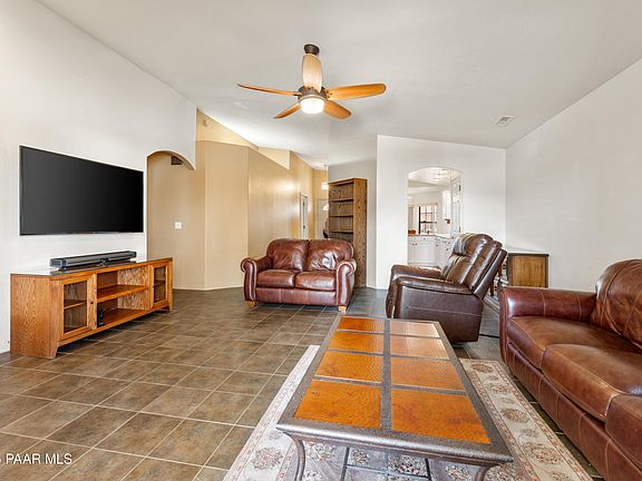 Picture yourself in this inviting home, tucked away on a quiet cul-de-sac in the desirable Prescott Country Club neighborhood. From the moment you step inside, you'll love the open great room with tall ceilings, warm gas fireplace, and thoughtfully designed floor plan. The kitchen shines with granite countertops, ample cabinetry, and a functional flow that makes meal prep effortless. The spacious primary suite offers a private escape with a luxurious ensuite featuring a garden tub, walk-in shower, and generous storage. Two additional bedrooms and a full bath provide flexibility for guests, a home office, or hobbies. Step outside and unwind on the brand-new Trex deck, which overlooks a spacious, low-maintenance backyard, fully fenced and ideal for gatherings, pets, or peaceful mornings.