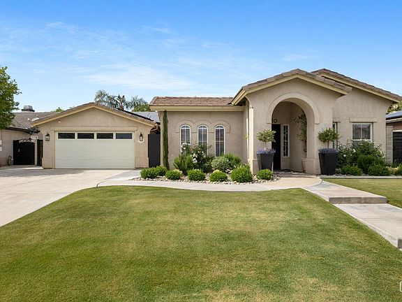 Welcome to Seven Oaks Santa Barbara Series by Kyle Carter! This stunningly updated home offers 3 spacious bedrooms plus an office. The kitchen features quartz counters, a large center island, white cabinets, stainless appliances, farm sink, and a walk-in pantry with barn door. The great room includes hardwood floors, a gas fireplace, and faux wood beam ceilings. Rotunda entry with office on one side and flex space or second office on the other, both with hardwood floors and beam details. The private primary suite has hardwood floors, dual quartz vanities, and large walk-in closet. Both guest bedrooms include walk-in closets. Hall bath has also been updated with quartz and subway tile over tub/shower. Enjoy the covered patio and beautifully landscaped backyard or relax in your private interior courtyard. Save on your PGE bills with the Paid for Solar! Just a short walk to the neighborhood park. Move-in ready in one of Bakersfield's most desirable neighborhoods!
