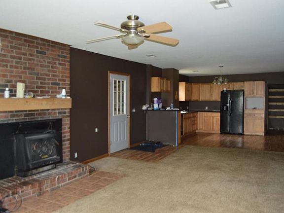 Beautiful treed setting on 5 Acres located on blacktop, 4 bedroom farm home - with updated kitchen cabinets, wood stove in living room stays, kitchen and living room are open, 40x60 shop with electricity, 20x40 newer pole barn.